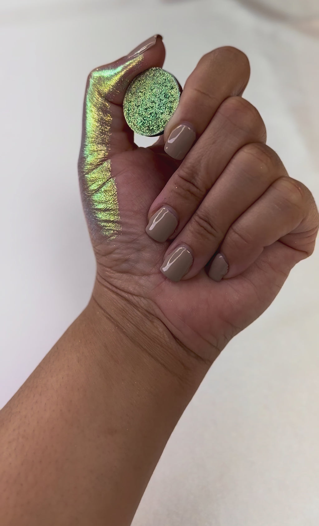 Electric Eel-green blue gold holochrome eyeshadow.