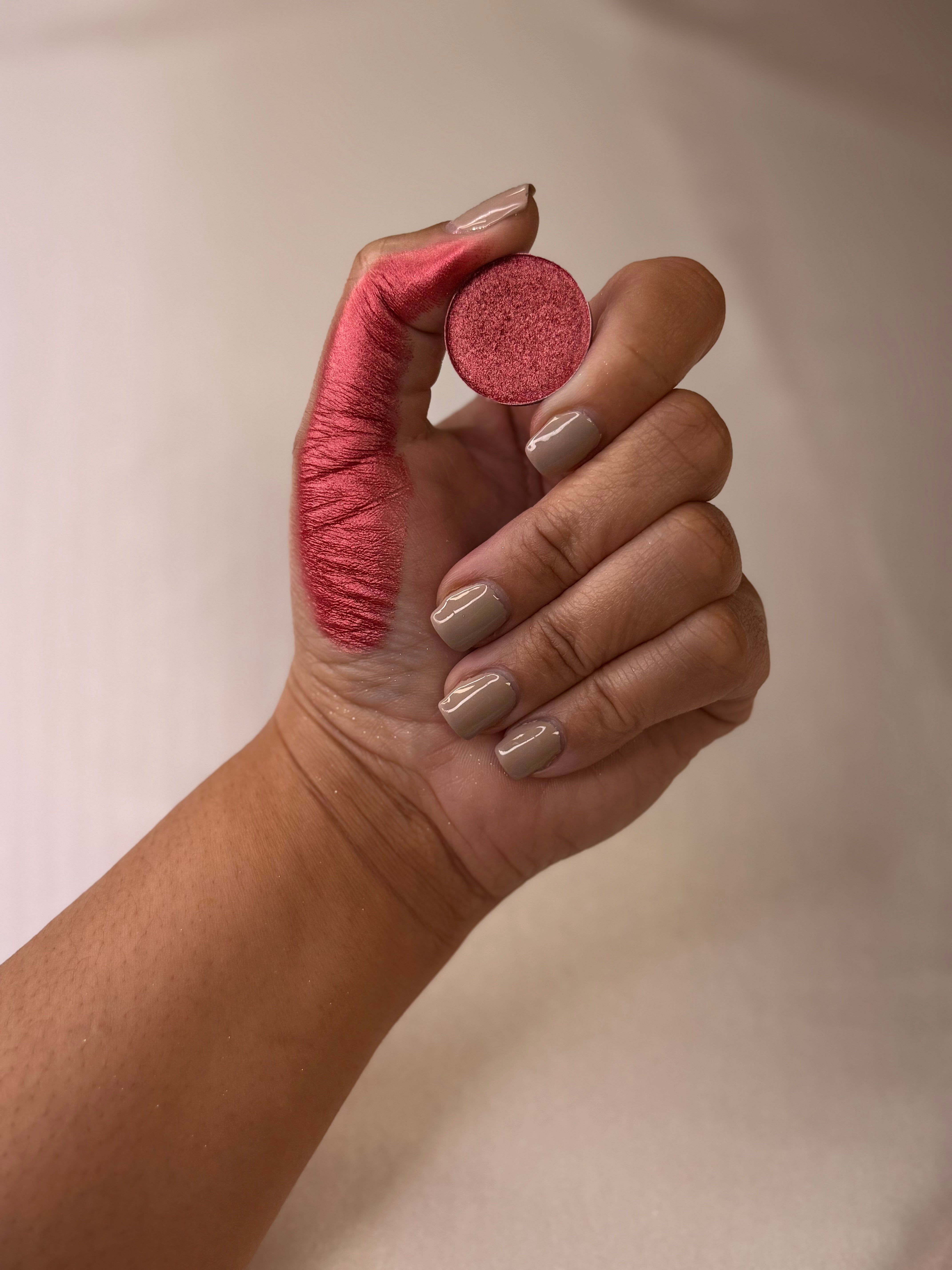 Snatched-coral peach foiled eyeshadow.