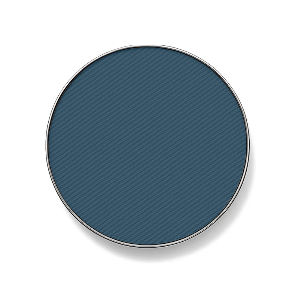 Peacock-deep denim blue matte eye shadow.